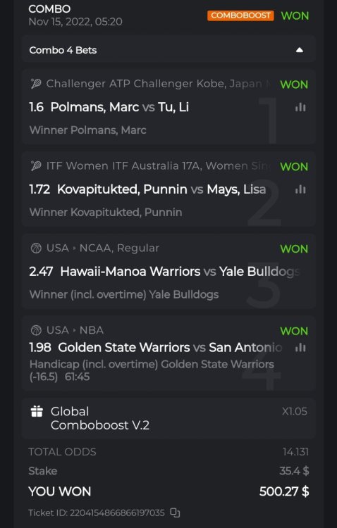 1. 2204154866866197035 2203594701855142080 The second betslip got settled on 14th Nov morning so it should be counted too i hope so.