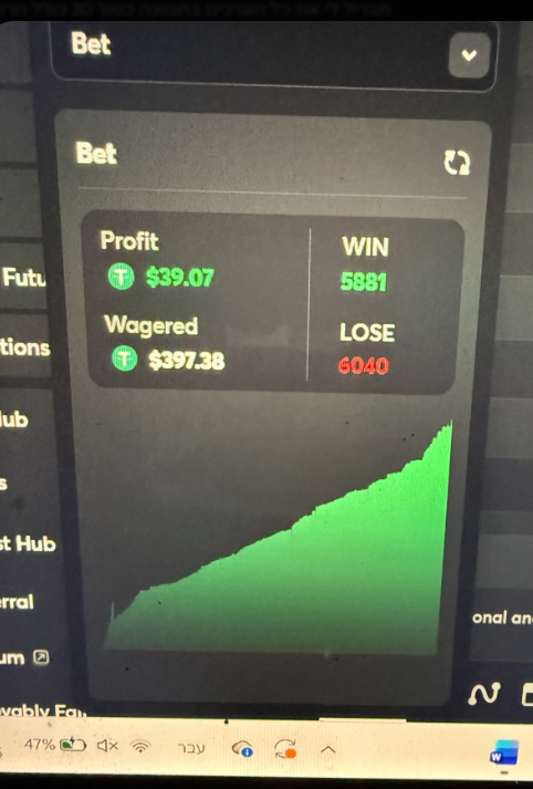 ystudio3d Posted 2 hours ago Share Posted 2 hours ago Hi everyone, I’m releasing a version of my personal Hash Dice script (OMEGA v7) as a gift to the community. This engine is the result of applying my 5 years of algorithmic trading experience to high-variance gaming environments. Important Disclaimer: Gambling involves significant risk. This script is based on my personal research and testing. It is not a guarantee of profit. Use it at your own risk and only with capital you can afford to lose. The Logic Behind OMEGA v7: Instead of a blind betting pattern, this script uses a State Machine to navigate through different phases of a session: GHOST Phase: Runs 0.0001 bets to analyze the seed and wait for a specific setup. HUNT Phase: Enters active betting once the setup is detected, using Bet Jitter to vary the bet size slightly for better account protection. The Vault (Trailing-Stop): Once a profit target is hit, the script activates a trailing stop-loss, "locking" gains and moving the exit floor upward as you win. Cooldown: Forced rest periods between sessions to maintain engine stability. Test Run Results (See Attached Screenshot): This screenshot demonstrates a stability run of nearly 12,000 autonomous rounds. You can see the engine successfully navigating drawdowns and recovering using the trailing logic. Total Rounds: 11,921 (Wins: 5881 / Losses: 6040) Wagered Volume: $397.38 Net Profit: $39.07 The Code: var config = { hunt_bet: { label: "Hunt Bet", value: 0.02, type: "number" }, hunt_pay: { label: "Hunt Payout", value: 10.00, type: "number" }, trail: { label: "Trail Amount", value: 0.30, type: "number" }, trail_act: { label: "Trail Activate", value: 0.50, type: "number" }, hard_sl: { label: "Hard Stop Loss", value: 1.00, type: "number" }, hunt_max: { label: "Max Hunt", value: 20, type: "number" }, cooldown: { label: "Cooldown Rounds",value: 50, type: "number" }, max_loss: { label: "Kill Switch $", value: 3.00, type: "number" }, ghost_min: { label: "Ghost Min", value: 5, type: "number" }, ghost_max: { label: "Ghost Max", value: 10, type: "number" }, hit_ghost_min:{label: "Hit Ghost Min", value: 2, type: "number" }, hit_ghost_max:{label: "Hit Ghost Max", value: 5, type: "number" }, bet_jitter: { label: "Bet Jitter %", value: 20, type: "number" }, initial_bal:{ label: "Balance", value: currency.amount, type: "number" } }; var total = 0, sess = 1, sW = 0, sL = 0, rd = 0; var sn = 0, pk = 0, g = 0, hN = 0, hits = 0; var trailOn = false; var mode = 'GHOST'; var coolLeft = 0; var ghostTarget = 8; function randGhost(isAfterHit) { var lo, hi; if (isAfterHit) { lo = config.hit_ghost_min.value; hi = config.hit_ghost_max.value; } else { lo = config.ghost_min.value; hi = config.ghost_max.value; } return Math.floor(Math.random() * (hi - lo + 1)) + lo; } function jitter(base) { var pct = config.bet_jitter.value / 100; var mult = 1 + (Math.random() * 2 - 1) * pct; var b = base * mult; return Math.round(Math.max(0.0001, b) * 10000) / 10000; } function startSession() { sn = 0; pk = 0; g = 0; hN = 0; hits = 0; trailOn = false; mode = 'GHOST'; ghostTarget = randGhost(false); log.info("S" + sess + " START | Ghost:" + ghostTarget + " | Total:" + total.toFixed(4) + " W:" + sW + " L:" + sL); } function startCooldown() { coolLeft = config.cooldown.value + Math.floor(Math.random() * 20); mode = 'COOL'; log.info("COOLDOWN " + coolLeft + " rounds..."); } function main() { ghostTarget = randGhost(false); log.info("OMEGA v7 AUTO | x" + config.hunt_pay.value + " trail:" + config.trail.value); game.onBet = function() { rd++; var B = config.hunt_bet.value; var T = config.hunt_pay.value; var TRAIL = config.trail.value; var TACT = config.trail_act.value; var SL = config.hard_sl.value; var HMAX = config.hunt_max.value; var KILL = config.max_loss.value; if (total <= -KILL) { log.error("KILL " + total.toFixed(4) + " S:" + sess + " W:" + sW + " L:" + sL); game.stop(); return; } /* === COOLDOWN === */ if (mode === 'COOL') { coolLeft--; if (coolLeft <= 0) { sess++; startSession(); } game.bet(0.0001, 1.0102).then(function(p) { var pf = p > 1 ? 0.0001 * 0.0102 : -0.0001; total += pf; }); return; } /* === CHECK TRAIL / SL === */ if (sn > pk) pk = sn; if (pk >= TACT) trailOn = true; if (trailOn && sn <= pk - TRAIL) { sW++; log.success("TRAIL S" + sess + " +" + sn.toFixed(4) + " pk:" + pk.toFixed(4) + " | Total:" + total.toFixed(4) + " W:" + sW); startCooldown(); game.bet(0.0001, 1.0102).then(function(p) { var pf = p > 1 ? 0.0001 * 0.0102 : -0.0001; total += pf; }); return; } if (sn <= -SL) { sL++; log.error("SL S" + sess + " " + sn.toFixed(4) + " | Total:" + total.toFixed(4) + " L:" + sL); startCooldown(); game.bet(0.0001, 1.0102).then(function(p) { var pf = p > 1 ? 0.0001 * 0.0102 : -0.0001; total += pf; }); return; } /* === GHOST PHASE === */ if (mode === 'GHOST') { g++; if (g >= ghostTarget) { mode = 'HUNT'; hN = 0; } game.bet(0.0001, 1.0102).then(function(p) { var pf = p > 1 ? 0.0001 * 0.0102 : -0.0001; sn += pf; total += pf; }); return; } /* === HUNT PHASE === */ var b = B; if (hN >= 5 && hN < 10) b = B * 2; if (hN >= 10) b = B * 4; b = jitter(b); var t = T; /* Payout jitter: randomly nudge target ±0.5 */ var payJitter = (Math.random() - 0.5) * 1.0; t = Math.max(2.00, T + payJitter); t = parseFloat(t.toFixed(2)); log.info("S" + sess + " H" + (hN+1) + " B:" + b.toFixed(4) + " x" + t + (trailOn ? " T@" + (pk-TRAIL).toFixed(3) : "")); if (rd % 50 === 0) { var real = currency.amount - config.initial_bal.value; log.info("R:" + rd + " S" + sess + " sn:" + sn.toFixed(4) + " total:" + total.toFixed(4) + " real:" + real.toFixed(4) + " W:" + sW + " L:" + sL); } game.bet(b, t).then(function(payout) { var won = payout > 1; var pf = won ? (b * t) - b : -b; sn += pf; total += pf; if (won) { hits++; log.success("HIT +" + pf.toFixed(4) + " sn:" + sn.toFixed(4) + " total:" + total.toFixed(4)); /* >>> GHOST BETWEEN HITS <<< */ mode = 'GHOST'; g = 0; hN = 0; ghostTarget = randGhost(true); } else { hN++; if (hN >= HMAX) { mode = 'GHOST'; 